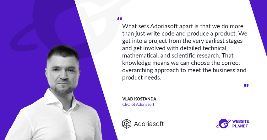 Adoriasoft’s focus is on the fundamental building blocks of emerging tech like blockchain and artificial intelligence. These ideas are becoming more mainstream and accessible to online businesses, so we sat down with Website Planet to discuss what our boutique blockchain development company can do. More specifically, our CEO and founder, Vlad Kostanda, spoke with Marko Velimirović, a writer and website developer. They talked about a range of topics, including what we offer and the passions of our expert team.